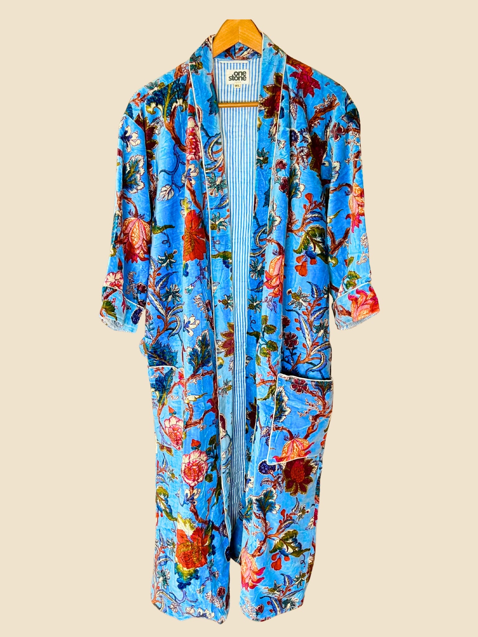 A robe for slow mornings and staying put. The Trellis Velvet Bathrobe is made from soft cotton velvet and lined in smooth cotton for an easy, breathable feel. It’s cozy but never bulky, polished without trying, and makes coffee refills feel extra luxurious.